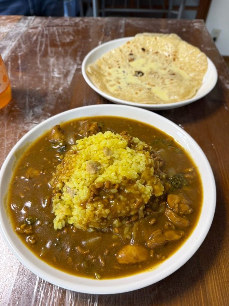 完成したチャパティーにカレーとプラオがそろうと、達成感と笑顔が広がり、仲間と協力して作る喜びを改めて実感する一日となりました。