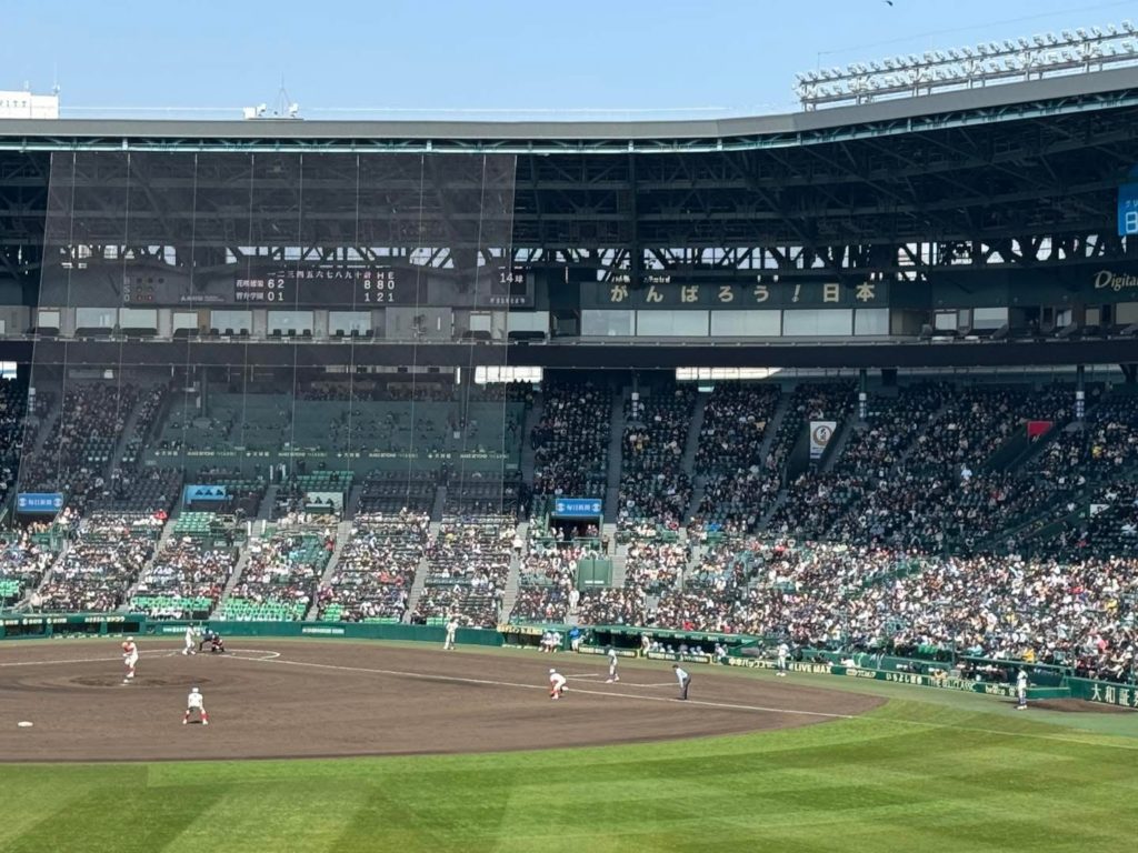 最初は「わぁ…広いなぁ…」と少し圧倒されて戸惑っている様子でしたが、試合が始まり、アルプススタンドからの大声援が響き渡ると、もう止まりません(笑)。