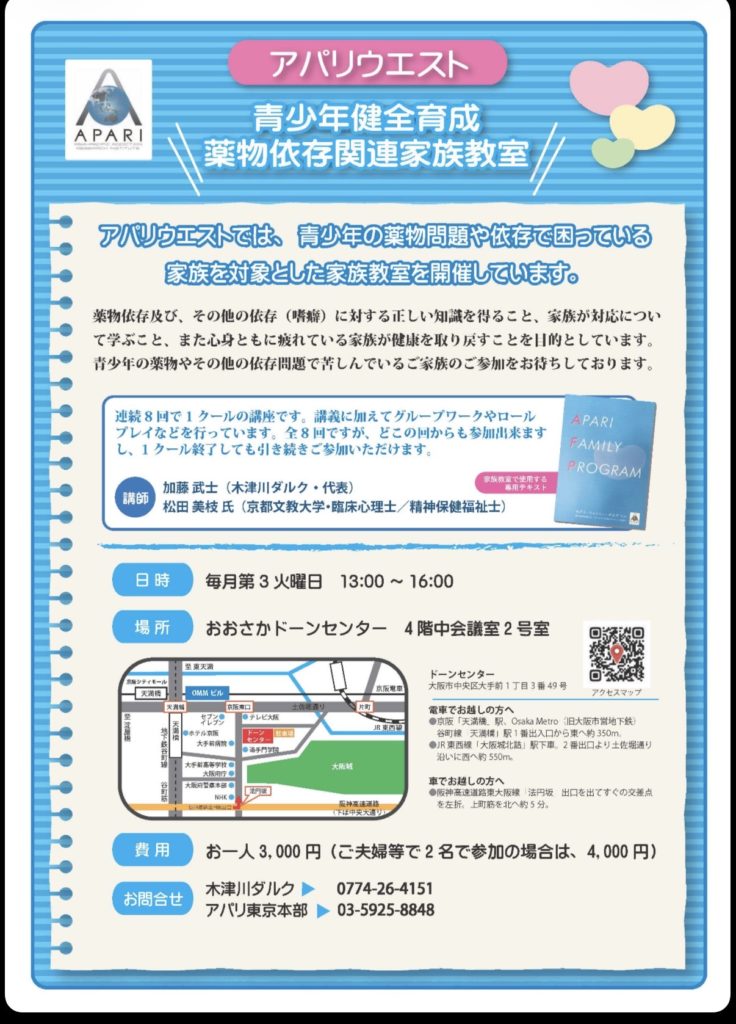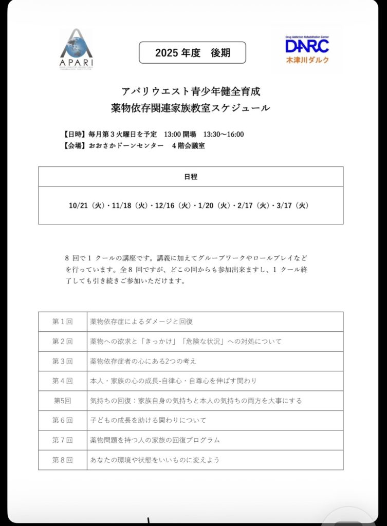 このたび、私たちは久しぶりに、じっくりと“薬物問題の最前線”を学び合う二日間の研修会を企画しました。現場の実践を共有し、制度や支援のあり方をともに考える時間にしたいと思います。
