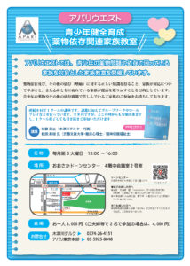 アパリウエストでは、薬物の問題で困っている家族を対象とした家族教室を開催しています。